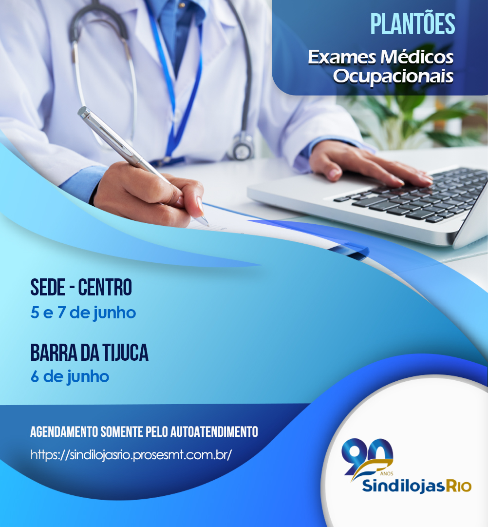 Os próximos plantões de exames médicos ocupacionais são: Sede Sindical nos dias 5 e 7 de junho Endereço : Rua da Quitanda, 3 – 10º andar CEP: 20011-030 Bairro :…